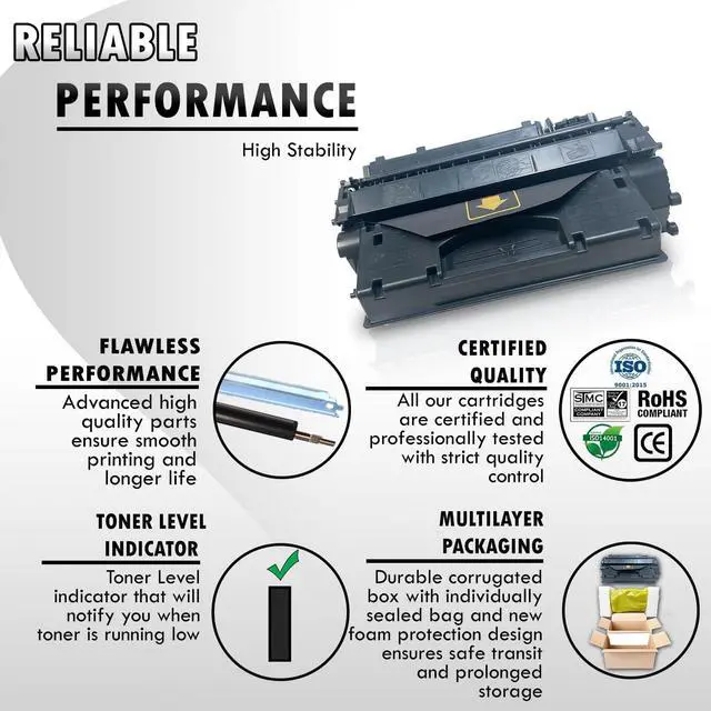 Precisely engineered to ensure seamless installation and reliableprinting performance. Each toner cartridge goes throughrigorousquality control process to ensure consistent and stableperformance.