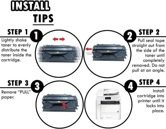 PRODUCT INFO Inkfirst Compatible Toner Cartridges for Canon 120 2617B001AA 2PK Package Contents TONER CARTRIDGE DETAILS Top Quality Photoconductor Drum Professional Quality Toner Advanced High-quality parts Precisely Engineered INSTALL TIPS STEP 1 STEP 2 STEP 3 STEP 4