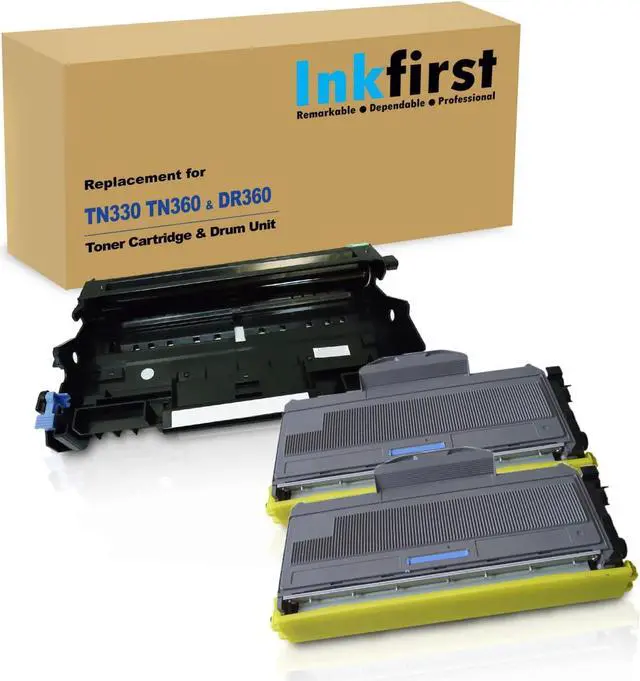 These InkFirst compatible remanufactured TN-330 DR-360 black toner cartridges & drums are manufactured in ISO9001 and ISO40001 certified manufacturing facilities. These Brother TN-330 DR-360 replacement toner cartridges are cost-effective and they offer professional high printing quality for all your printing needs. You'll be getting the same OEM Brother TN-330 (TN330) toner cartridges & DR-360 (DR360) drum unit printing quality but only at a fraction of the cost. Save even more now with the purchasing of this value pack of 3 Brother TN-330 DR-360 compatible toner cartridges & drums. These replacement Brother TN-330 DR-360 toner cartridges & drums are for use in the following Brother printers: Brother DCP-7030 / DCP-7040, HL-2140 / HL-2170W, MFC-7340 / MFC-7345N / MFC-7440N / MFC-7840W.