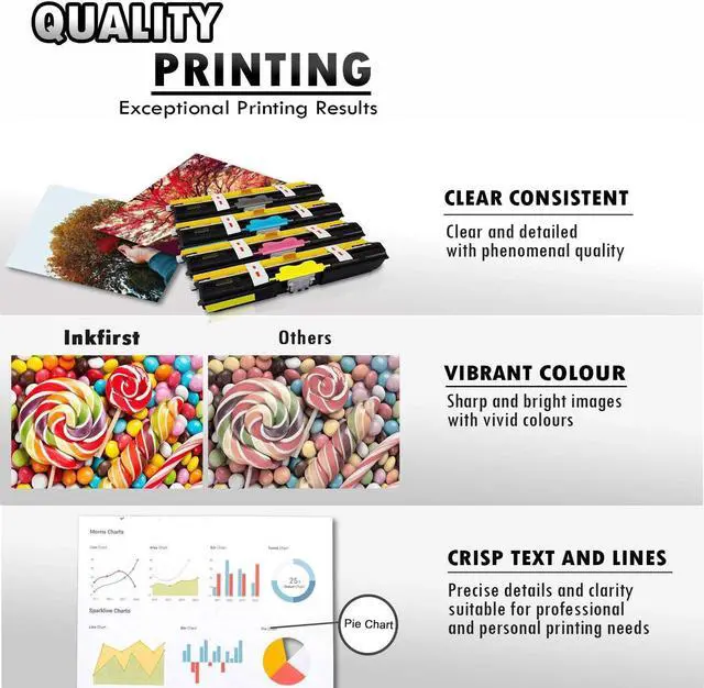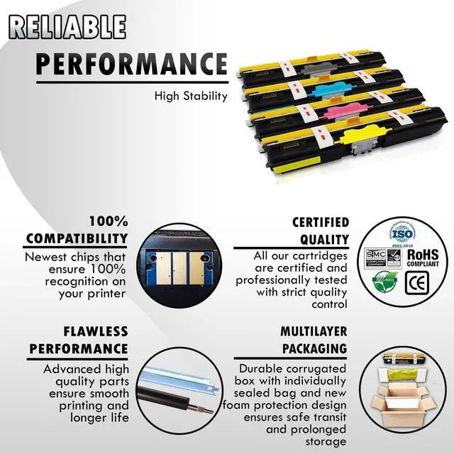 These Inkfirst compatible remanufactured C110 BK/C/M/Y Toner cartridges are manufactured in ISO9001 and ISO40001 certified manufacturing facilities. These Okidata C110BK/C110C/C110M/C110Y replacement Toner cartridges are cost-effective and they offer professional high printing quality for all your printing needs.You'll be getting the same OEM Okidata C110 Toner cartridges printing quality but only at a fraction of the cost. Save even more now with the purchasing of this value pack of 5 Okidata C110 compatible Toner cartridges. These replacement Okidata C110 Black Cyan Magenta Yellow Toner cartridges are for use in the following Okidata printers: Okidata C110 / C130 / C130N / MC160 MFP..