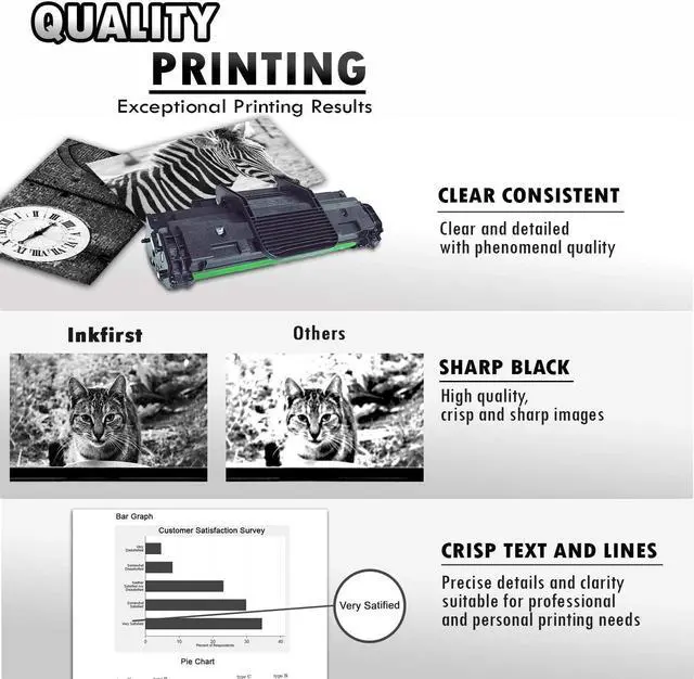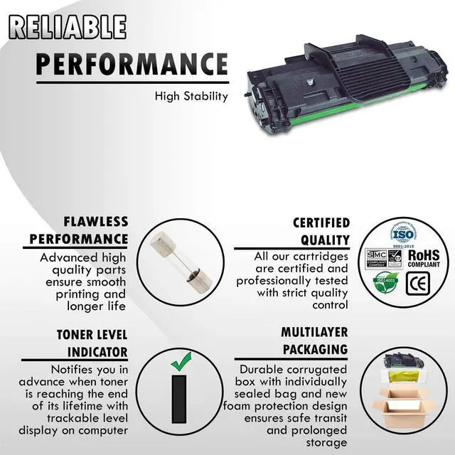 These Inkfirst compatible remanufactured 1100 black toner cartridges are manufactured in ISO9001 and ISO40001 certified manufacturing facilities. These Dell 1100 replacement toner cartridges are cost-effective and they offer professional high printing quality for all your printing needs. You'll be getting the same OEM Dell 1100 (310-6640, 310-7660) toner cartridges printing quality but only at a fraction of the cost. Save even more now with the purchasing of this value pack of 5 Dell 1100 compatible toner cartridges. These replacement Dell 1100 toner cartridges are for use in the following Dell printers: Dell 1100 / 1110.