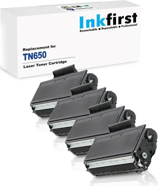 These Inkfirst compatible remanufactured TN-650 black toner cartridges are manufactured in ISO9001 and ISO40001 certified manufacturing facilities. These Brother TN-650 replacement toner cartridges are cost-effective and they offer professional high printing quality for all your printing needs. You'll be getting the same OEM Brother TN-650 (TN650) toner cartridges printing quality but only at a fraction of the cost. Save even more now with the purchasing of this value pack of 4 Brother TN-650 compatible toner cartridges. These replacement Brother TN-650 toner cartridges are for use in the following Brother printers: Brother DCP-8080DN / DCP-8085DN, HL-5340D / HL-5370DW / HL-5370DWT, MFC-8480DN / MFC-8890DW.