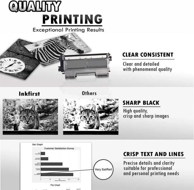 These Inkfirst compatible remanufactured TN-420 TN-450 black toner cartridges are manufactured in ISO9001 and ISO40001 certified manufacturing facilities. These Brother TN-420 TN-450 replacement toner cartridges are cost-effective and they offer professional high printing quality for all your printing needs. You'll be getting the same OEM Brother TN-420 TN-450 (TN420 TN450) toner cartridges printing quality but only at a fraction of the cost. These replacement Brother TN-420 TN-450 toner cartridges are for use in the following Brother printers: Brother DCP-7060D / DCP-7065DN, HL-2220 / HL-2230 / HL-2240 / HL-2240D / HL2270DW / HL-2280DW, MFC-7360N / MFC-7460DN / MFC-7860DW.