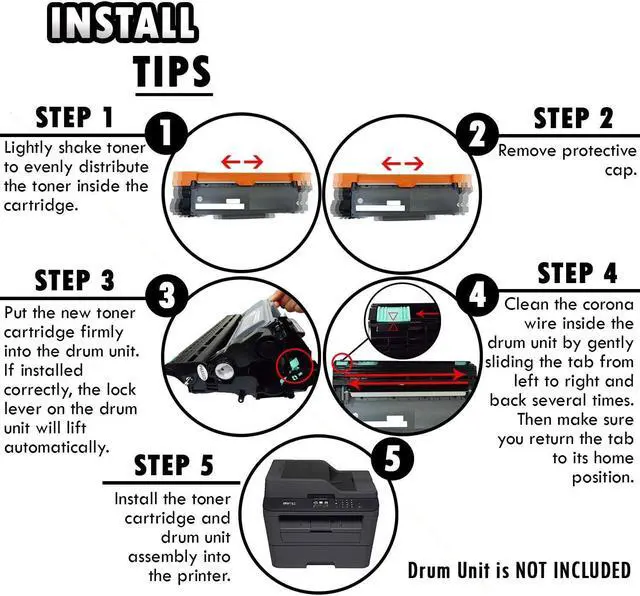 PRODUCT INFO Compatible Toner Cartridge for Brother TN-630 TN630 TN-660 TN660 Package Contents INK CARTRIDGE DETAILS Page Yield Display Professional Quality Toner Advanced High-quality parts Precisely Engineered INSTALL TIPS STEP 1 STEP 2 STEP 3 STEP 4