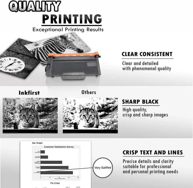 These Inkfirst compatible remanufactured TN-850 TN-820 black toner cartridges are manufactured in ISO9001 and ISO40001 certified manufacturing facilities. These Brother TN-850 TN-820 replacement toner cartridges are cost-effective and they offer professional high printing quality for all your printing needs. You'll be getting the same OEM Brother TN-850 TN-820 (TN850 TN820) toner cartridges printing quality but only at a fraction of the cost. Save even more now with the purchasing of this value pack of 4 Brother TN-850 TN-820 compatible toner cartridges. These replacement Brother TN-850 TN-820 toner cartridges are for use in the following Brother printers: Brother DCP-L5500DN / DCP-L5600DN / DCP-L5650DN / HL-L5000D / HL-L5100DN / HL-L5200DW / HL-L5200DWT / HL-L6200DW / HL-L6200DWT / HL-L6250DW / HL-L6300DW / HL-L6400DW / HL-L6400DWT / MFC-L5700DW / MFC-L5800DW / MFC-L5850DW / MFC-L5900DW / MFC-L6700DW / MFC-L6750DW / MFC-L6800DW / MFC-L6900DW .
