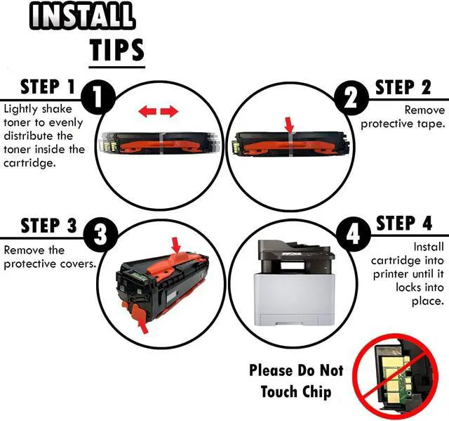 PRODUCT INFO Inkfirst Compatible Toner Cartridges for Samsung CLT-K504S C504S M504S Y504S 6 Pack Package Contents TONER CARTRIDGE DETAILS Smooth Printing Professional Quality Toner Advanced High-quality parts Precisely Engineered INSTALL TIPS STEP 1 STEP 2 STEP 3 STEP 4