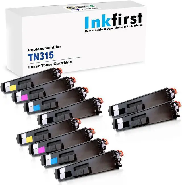 These Inkfirst compatible remanufactured TN315 BK/C/M/Y Toner cartridges are manufactured in ISO9001 and ISO40001 certified manufacturing facilities. These Brother TN315BK/TN315C/TN315M/TN315Y replacement Toner cartridges are cost-effective and they offer professional high printing quality for all your printing needs.You'll be getting the same OEM Brother TN315 Toner cartridges printing quality but only at a fraction of the cost. Save even more now with the purchasing of this value pack of 10 Brother TN315 compatible Toner cartridges. These replacement Brother TN315 Black Cyan Magenta Yellow Toner cartridges are for use in the following Brother printers: Brother HL-4150CDN / HL-4570CDW / HL-4570CDWT / MFC-9460CDN / MFC-9560CDW / MFC-9970CDW.