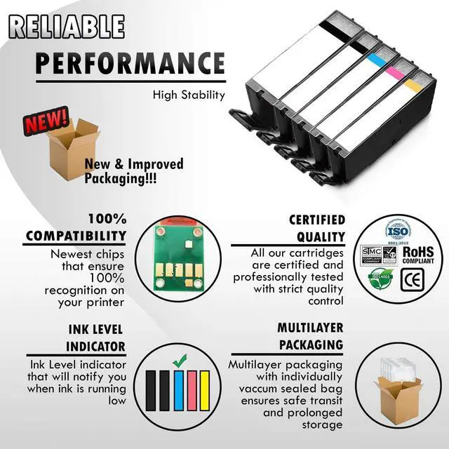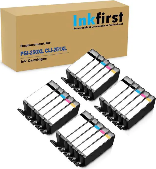 These Inkfirst Compatible Ink Cartridges Replacement for Canon PGI-250XL CLI-251XL PGI250XL CLI251XL are manufactured in ISO9001 and ISO40001 certified manufacturing facilities. These replacement Ink Cartridges are cost-effective and they offer satisfying quality for all your printing needs. Save even more now with the purchasing of this value pack of 20 Compatible Ink Cartridges replacement for Canon PGI-250XL CLI-251XL PGI250XL CLI251XL. These Compatible Ink Cartridges replacement for Canon PGI-250XL CLI-251XL PGI250XL CLI251XL are for use in the following Canon printers: Canon PIXMA MG5420 / MG5422 / MG5500 / MG5520 / MG5522 / MG5620 / MG6320 / MG6400 / MG6420 / MG6620 / MG7120 / MG7520 / MX720 / MX722 / MX920 / MX922 / iP7220 / iP8720 / iX6820.