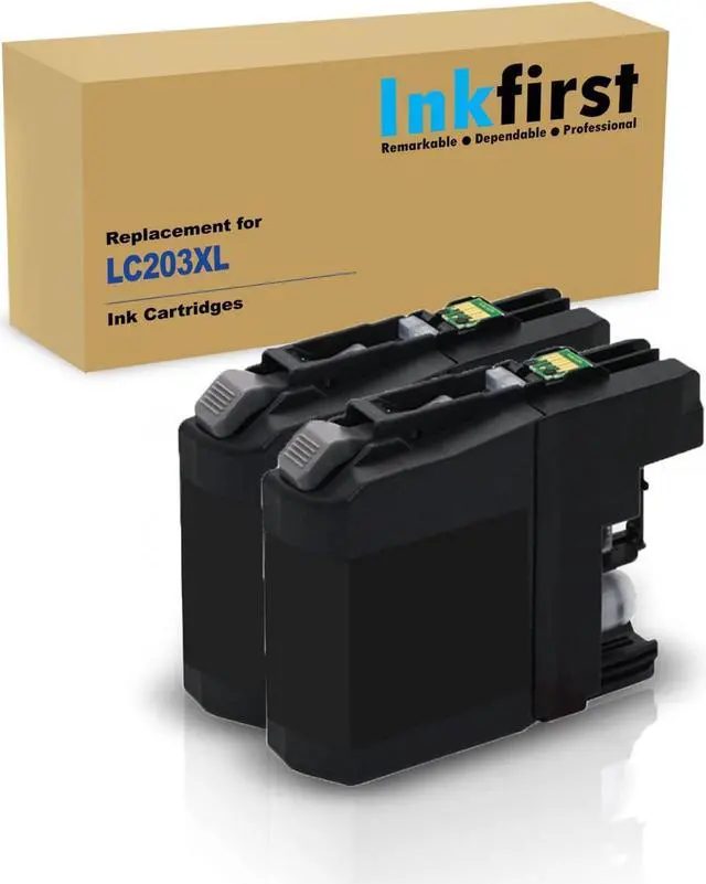 These Ink First compatible remanufactured LC203XLBK black ink cartridges are manufactured in ISO9001 and ISO40001 certified manufacturing facilities. These Brother LC203XLBK replacement ink cartridges are cost-effective and they offer professional high printing quality for all your printing needs. Save even more now with the purchasing of this value pack of 2 compatible black Ink cartridges for Brother LC203XL. You'll be getting the same OEM Brother LC203XL Black ink cartridges printing quality but only at a fraction of the cost. These replacement Brother LC203XL Black ink cartridges are for use in the following Brother printers: Brother MFC-J4320DW/ MFC-J4420DW/ MFC-J460DW/ MFC-J4620DW/ MFC-J480DW/ MFC-J485DW/ MFC-J5520DW/ MFC-J5620DW/ MFC-J5720DW/ MFC-J680DW/ MFC-J880DW/ MFC-J885DW.