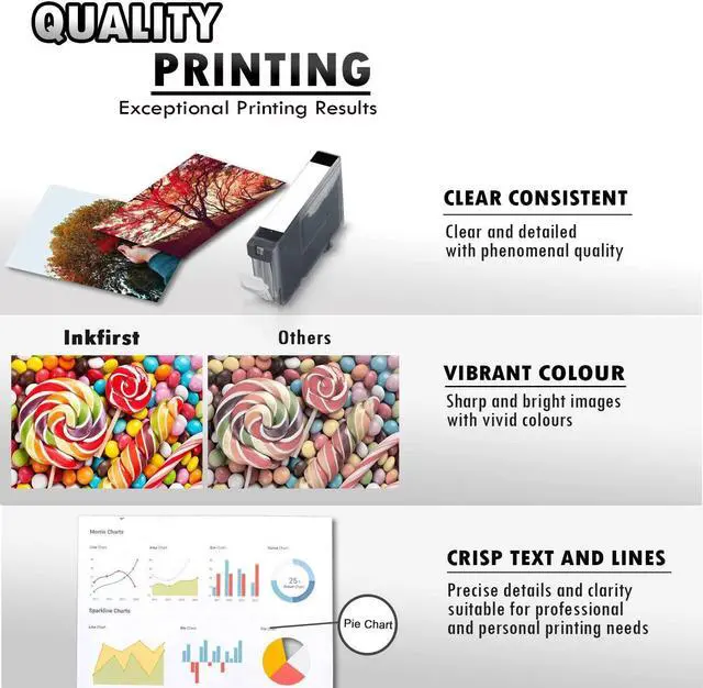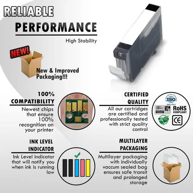 These Inkfirst Compatible Black Ink Cartridges Replacement for Canon CLI-8 CLI8 CLI-8BK CLI8BK are manufactured in ISO9001 and ISO40001 certified manufacturing facilities. These replacement Ink Cartridges are cost-effective and they offer satisfying quality for all your printing needs. These Compatible Ink Cartridges replacement for Canon CLI-8BK CLI8BK are for use in the following Canon printers: Canon Pixma iP4200 / iP4300 / iP4500 / iP5200 / iP5200R / iP6600D / iP6700D / MP500 / MP530 / MP600 / MP610 / MP800 / MP800R / MP810 / MP830 / MP950 / MP960 / MP970 / MX850 / Pro9000 / Pro9000 Mark II.