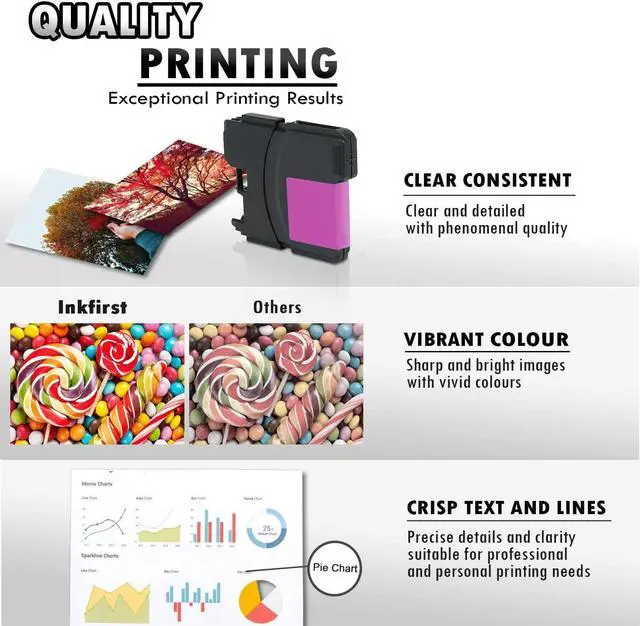 These Inkfirst compatible remanufactured LC61M magenta ink cartridges are manufactured in ISO9001 and ISO40001 certified manufacturing facilities. These Brother LC61M replacement ink cartridges are cost-effective and they offer professional high printing quality for all your printing needs. You'll be getting the same OEM Brother LC61 Magenta ink cartridges printing quality but only at a fraction of the cost. These replacement Brother LC61 Magenta ink cartridges are for use in the following Brother printers: Brother DCP-165C / DCP-385C / DCP-395CN / DCP-585CW / DCP-J125 / MFC-250C / MFC-255CW / MFC-290C / MFC-295CN / MFC-490CW / MFC-495CW / MFC-5490CN / MFC-5890CN / MFC-5895cw / MFC-6490CW / MFC-6890CDW / MFC-790CW / MFC-795CW / MFC-990CW / MFC-J220 / MFC-J265w / MFC-J270w / MFC-J410w / MFC-J415w / MFC-J615W / MFC-J630W