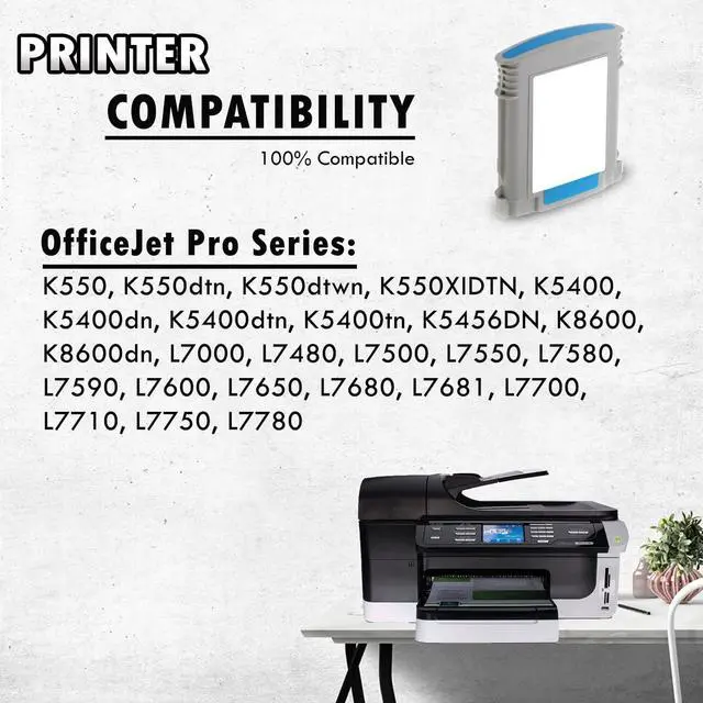 These Inkfirst Compatible Cyan Ink Cartridges Replacement for HP 88XL C9391AN are manufactured in ISO9001 and ISO40001 certified manufacturing facilities. These replacement Ink Cartridges are cost-effective and they offer satisfying quality for all your printing needs. These Compatible Ink Cartridges replacement for HP 88XL are for use in the following HP printers: HP Officejet Pro K550 / K550dtn / K550dtwn / K550XIDTN / K5400 / K5400dn / K5400dtn / K5400tn / K5456DN / K8600 / K8600dn / L7000 / L7480 / L7500 / L7550 / L7580 / L7590 / L7600 / L7650 / L7680 / L7681 / L7700 / L7710 / L7750 / L7780.