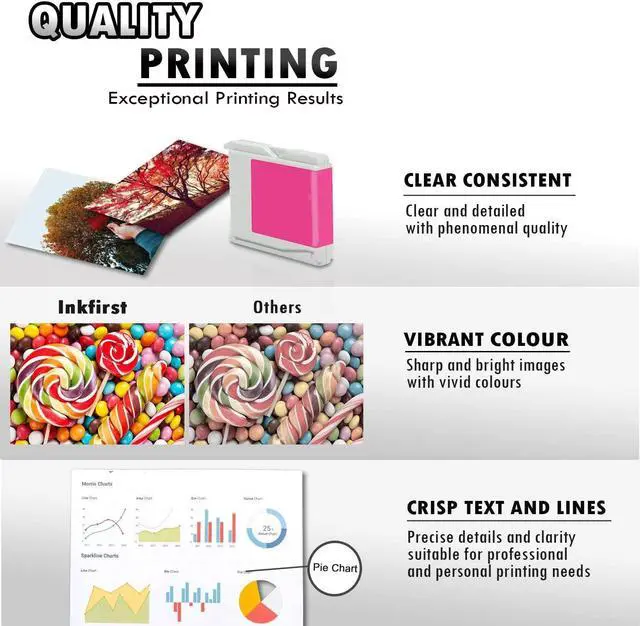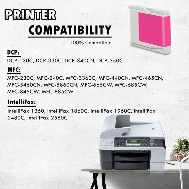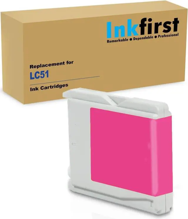 These Inkfirst compatible remanufactured LC51M magenta ink cartridges are manufactured in ISO9001 and ISO40001 certified manufacturing facilities. These Brother LC51M replacement ink cartridges are cost-effective and they offer professional high printing quality for all your printing needs. You'll be getting the same OEM Brother LC51 Magenta ink cartridges printing quality but only at a fraction of the cost. These replacement Brother LC51 Magenta ink cartridges are for use in the following Brother printers: Brother DCP-130C / DCP-330C / DCP-340CN / DCP-350C / MFC-230C / MFC-240C / MFC-3360C / MFC-440CN / MFC-465CN / MFC-5460CN / MFC-5860CN / MFC-665CW / MFC-685CW / MFC-845CW / MFC-885CW / IntelliFax 1360 / IntelliFax 1860C / IntelliFax 1960C / IntelliFax 2480C / IntelliFax 2580C.
