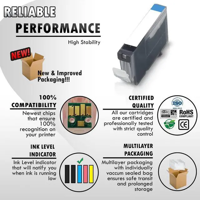 These Inkfirst Compatible Cyan Ink Cartridges Replacement for Canon CLI-8 CLI8 CLI-8C CLI8C are manufactured in ISO9001 and ISO40001 certified manufacturing facilities. These replacement Ink Cartridges are cost-effective and they offer satisfying quality for all your printing needs. These Compatible Ink Cartridges replacement for Canon CLI-8C CLI8C are for use in the following Canon printers: Canon Pixma iP3300 / iP3500 / iP4200 / iP4300 / iP4500 / iP5200 / iP5200R / iP6600D / iP6700D / MP500 / MP510 / MP520 / MP530 / MP600 / MP610 / MP800 / MP800R / MP810 / MP830 / MP950 / MP960 / MP970 / MX700 / MX850 / Pro9000 / Pro9000 Mark II.