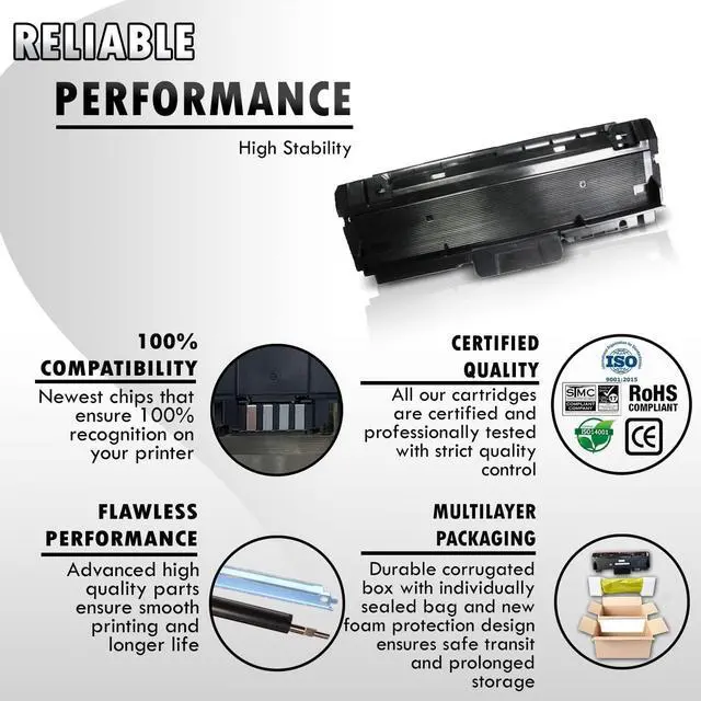 PRODUCT INFO Inkfirst Compatible Toner Cartridges Replacement for Samsung MLT-D116L D116L Package Contents TONER CARTRIDGE DETAILS Smooth Printing Professional Quality Toner Advanced High-quality parts Precisely Engineered INSTALL STEP 4