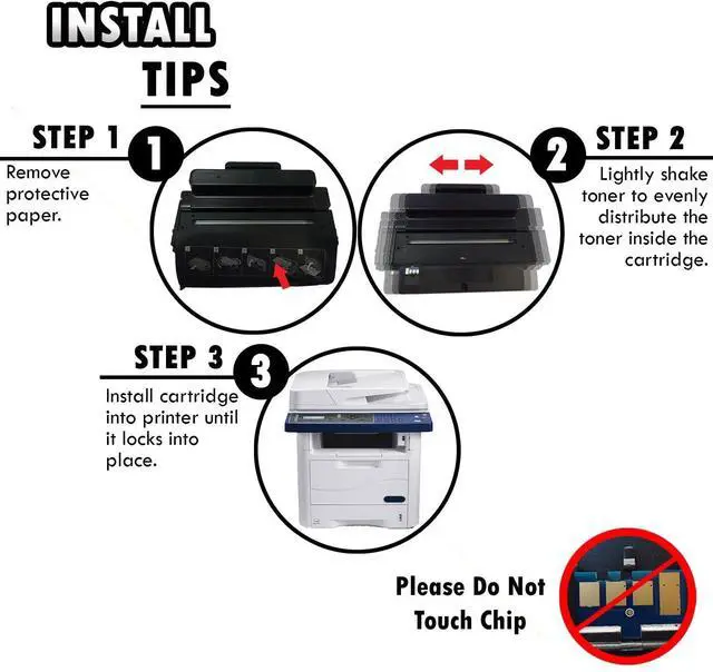 PRODUCT INFO Compatible Toner Cartridge for Xerox 3315 3325 (106R02311 / 106R2311) Package Contents TONER CARTRIDGE DETAILS Top Quality Photoconductor Drum Professional Quality Toner Advanced High-quality parts Precisely Engineered INSTALL STEP 4