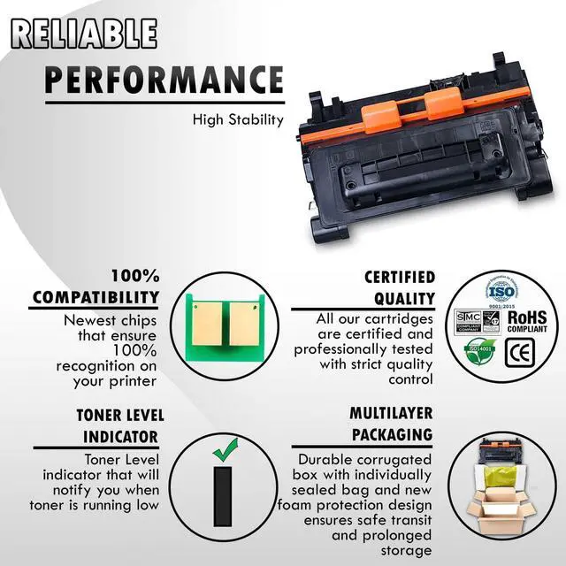 Precisely engineered to ensure seamless installation and reliable printing performance. Each toner cartridge goes throughrigorousquality control process to ensure consistent and stableperformance.