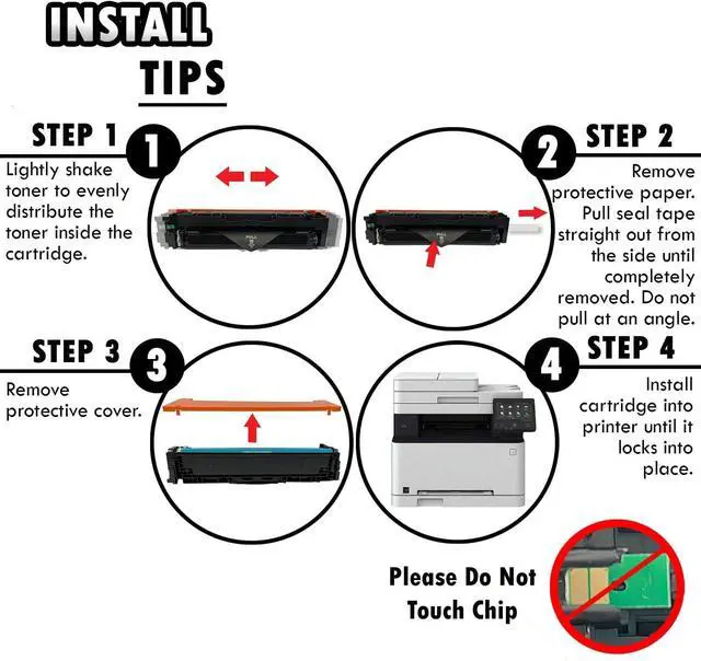 PRODUCT INFO Inkfirst Compatible Colour Toner Cartridges for HP CF400X CF401X CF402X CF403X 201X 4PK Package Contents TONER CARTRIDGE DETAILS Top Quality Photoconductor Drum Professional Quality Toner Advanced High-quality parts Precisely Engineered INSTALL STEP 4