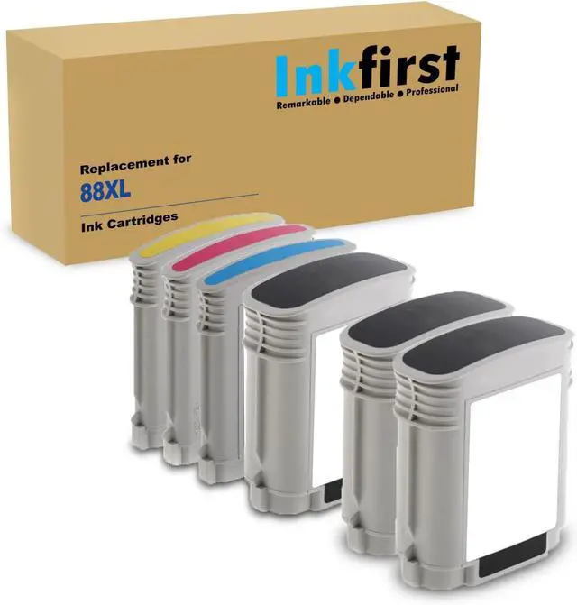 PRODUCT INFO Inkfirst Compatible Ink Cartridges for HP 88 XL 88XL 6PK WORK WITH: Package Contents INK CARTRIDGE DETAILS Advanced High-quality chips Professional Quality Ink High-Capacity Sponge Perfect Performance INSTALL STEP 4