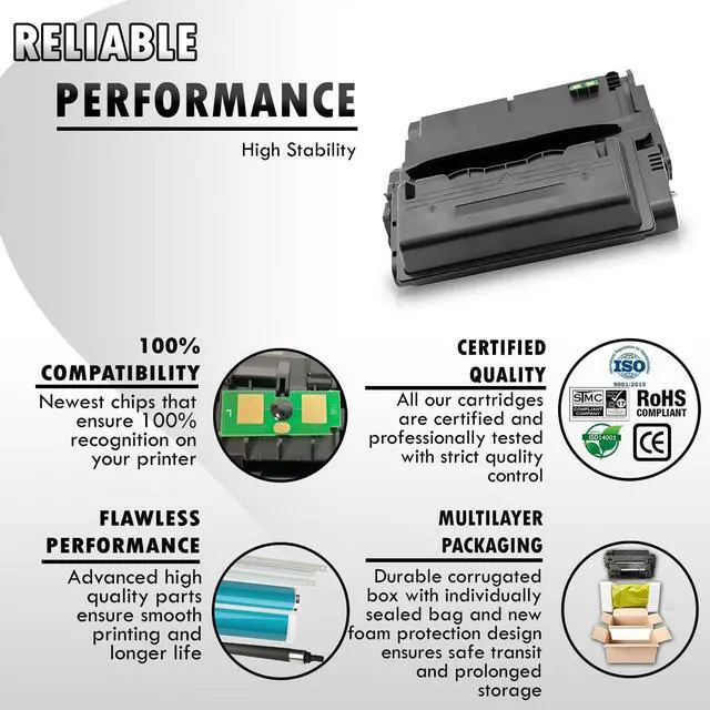 Precisely engineered to ensure seamless installation and reliable printing performance. Each toner cartridge is methodically tested to provide consistent and stable performance.