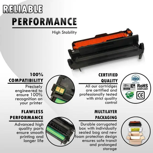 Top-quality and wear resistance photo-conductor drum with thicker coating provides smooth printing and longer life.