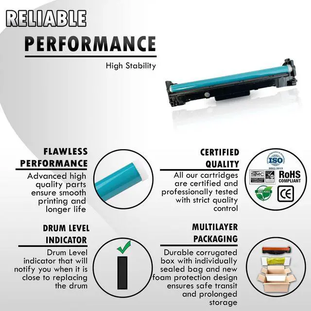 Top-quality and wear resistance photo-conductor drum with thicker coating provides smooth printing and longer life.
