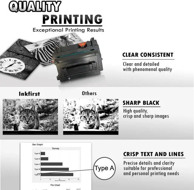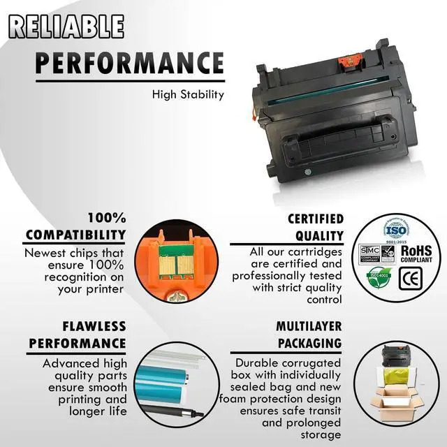 These Inkfirst Compatible toner cartridge Replacement for HP CE390A 90A are manufactured in ISO9001 certified factories. This ensures that our Inkfirst Compatible toner cartridge Replacement for HP CE390A 90A will provide the high printing quality. These Inkfirst Compatible toner cartridge Replacement for HP CE390A 90A are warrantied with a 2 Year Guarantee Policy against manufacturing defects.