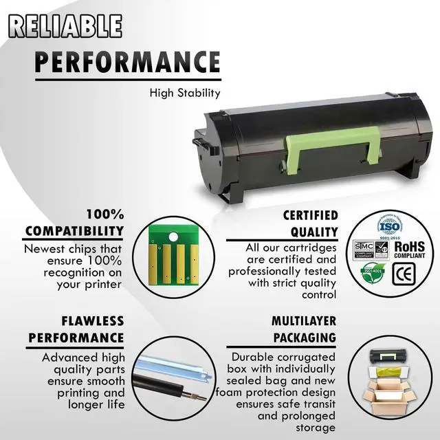 These Inkfirst Compatible Toner Cartridge Replacement for Lexmark MS317 MS417 MX317 MX417 are manufactured in ISO9001 certified factories. This ensures that our Inkfirst Compatible Toner Cartridge Replacement for Lexmark MS317 MS417 MX317 MX417 will provide the high printing quality. These Inkfirst Compatible Toner Cartridge Replacement for Lexmark MS317 MS417 MX317 MX417 are warrantied with a 2 Year Guarantee Policy against manufacturing defects