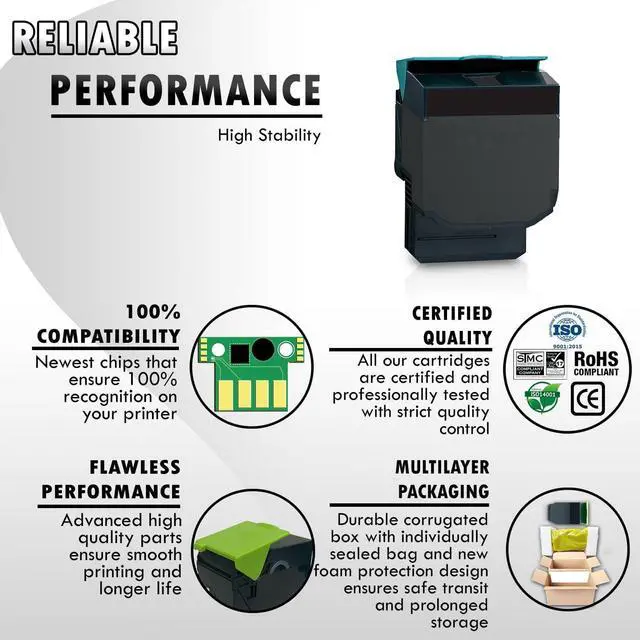 These Inkfirst Compatible Toner Cartridge Replacement for Lexmark CS317 CS417 CX317 CX417 are manufactured in ISO9001 certified factories. This ensures that our Inkfirst Compatible Toner Cartridge Replacement for Lexmark CS317 CS417 CX317 CX417 will provide the high printing quality. These Inkfirst Compatible Toner Cartridge Replacement for Lexmark CS317 CS417 CX317 CX417 are warrantied with a 2 Year Guarantee Policy against manufacturing defects