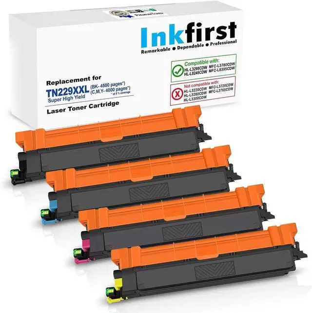 This Value Pack contains a total of 4 Inkfirst compatible Super High Yield Toner cartridges for Brother TN229XXL 229XL . It includes: 1 x Black, 1 x Cyan, 1 x Magenta, 1 x Yellow.