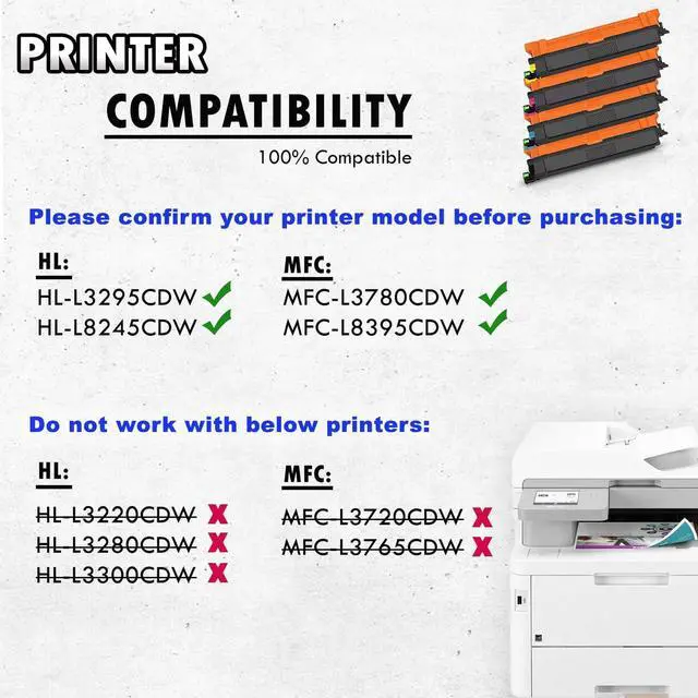 Compatible Brother Printer Models: HL-L3295CDW HL-L8245CDW MFC-L3780CDW MFC-L8395CDW