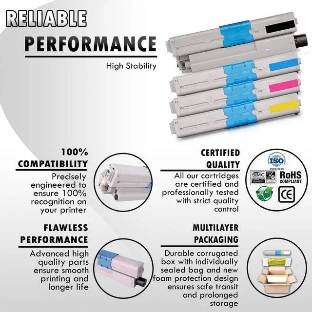 These Inkfirst Compatible toner cartridges Replacement for Okidata C330 C530 are manufactured in ISO9001 certified factories. This ensures that our Inkfirst Compatible toner cartridges Replacement for Okidata C330 C530 will provide the high printing quality. These Inkfirst Compatible toner cartridges Replacement for Okidata C330 C530 are warrantied with a 2 Year Guarantee Policy against manufacturing defects.