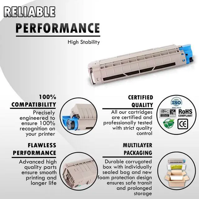 These compatible C610BK (C610 BK) Toner cartridges are manufactured in ISO9001 certified factories. This ensures that our Toner cartridges for Okidata C610 Black will provide the same premium printing quality as the OEM products.