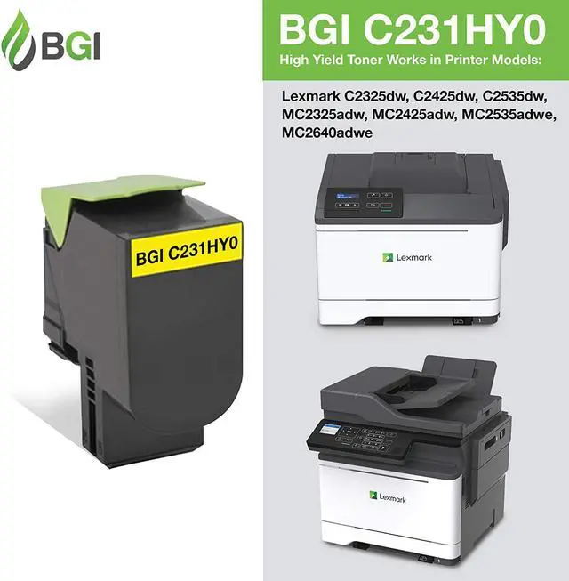 BGI Compatible Replacement Toner for Lexmark C2325dw MC2325adw C2325 C2425dw MC2425adw C2535dw MC2535adwe MC2640adwe Toner Ink | C231HY0 | Yellow | High Yield