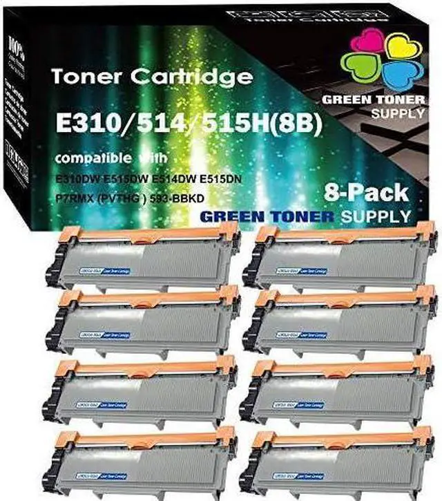 Green Toner Supply (TM) Compatible Dell PVTHG, 593-BBKD, E310dw, [High Yield 2600 Pages] E514dw, E515dw, E515dn Black Laserjet Toner Cartridge (Set of 8)