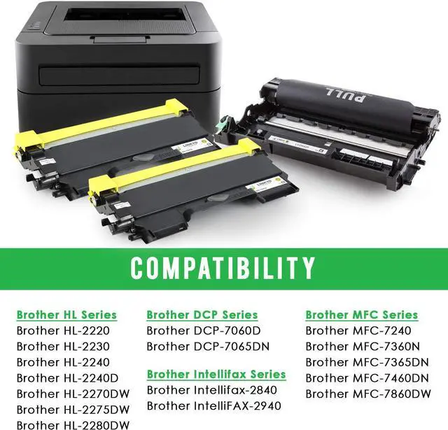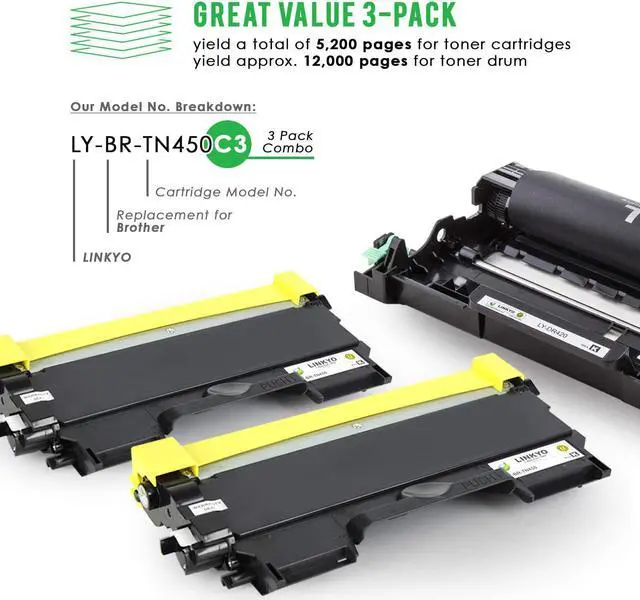 This 3-Pack LINKYO Replacement Toner Cartridges for Brother TN450 and DR420 is compatible with the following printers: