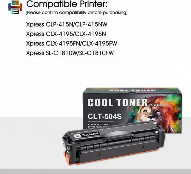 Cool Toner 4 Packs Compatible Toner Cartridge Replacement for Samsung clt-k504s samsung c1860fw c1810w xpress c1810w clx-4195fw sl-c1860fw clp-415nw sl-c1810w toner cartridges (Black Cyan Yellow Magenta,)