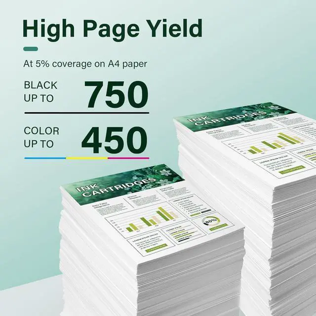 High Page Yield: It yields up to 750 pages for each 65XL Black Ink and 400 pages for each 65XL Color Ink at 5% coverage (A4e letter)