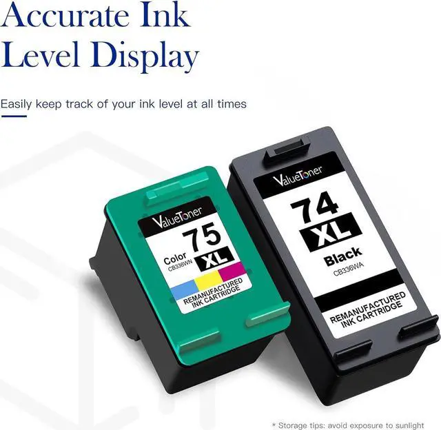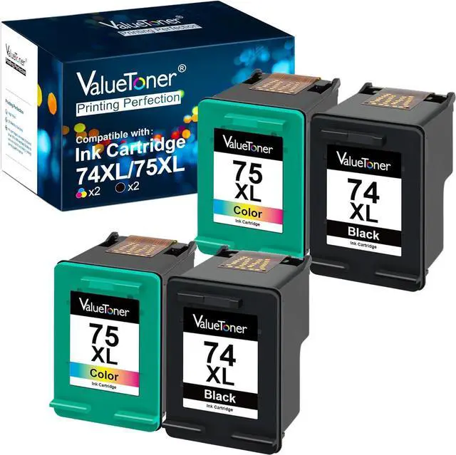4.0 out of 5 starsValuetoner Remanufactured Ink Cartridge Replacement for HP 74XL & 75XL High Yield CB336WN CB338WN for Deskjet D4260 D4280 D4360 Printer (2 Black, 2 Tri-Color) 4 Pack