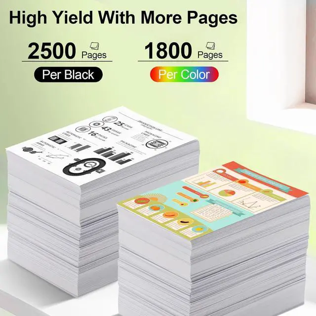 Page Yield : 2,500 pages black / 1,800 pages per color cartridge at 5% coverage