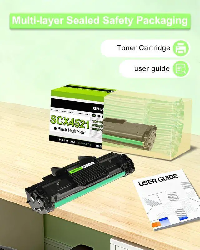 Remanufactured toner cartridge unconditionally guaranteed to provide same performance and reliability as genuine Samsung cartridges.