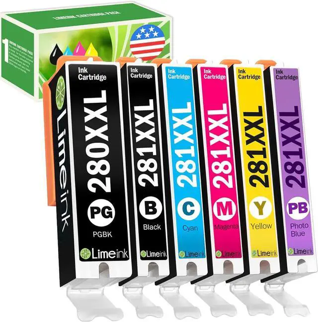 Limeink 6 Pack Compatible PGI-280XXL CLI-281XXL High Yield Ink Cartridges Replacements for Canon Pixma TR7520 TR8520 TS6120 TS8120 TS9120 (1 Bk, 1 PB Bk, 1 Cyan, 1 Magenta, 1 Yellow, 1 Photo Blue)