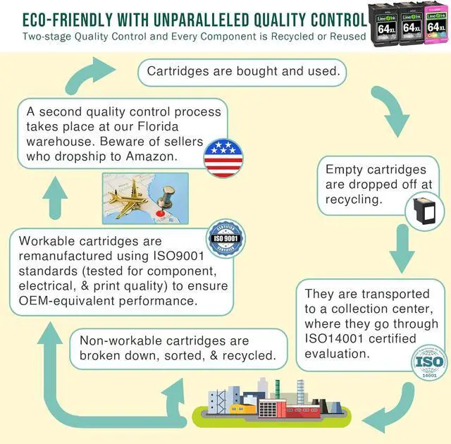 - Get reliable printing performance, at a fair price. Our cartridges are tested to ensure consistent, quality prints that match the image/text seen on one's printer both at the component level and with print tests.- Customer protection you can trust. Our goal is for our customers to be 100 percent satisfied. You are fully protected by our 1-year warranty with either replacement or refund. Our U.S. customer support team is available 24/7 for any questions by clicking on our store name (Bordeaux Tech) above the bullet section, and clicking on 'Ask a question' on the top-right side. - Compatible with HP printers: Envy Photo 6220 6222 6230 6232 6234 6252 6255 6258 7120 7130 7132 7134 7155 7158 7164 7800 7820 7822 7830 7855 7858 7864, Envy 5542 ,Tango, Tango X, Tango Terra Printer.- Page yield: 600 pages per cartridge (Black), 415 per cartridge (Color).- Cartridges come filled with chip, show accurate ink levels, and work with all new printers. These remanufactured cartridges do not void the printer's warranty. Cartridges are ISO 9002 certified for print quality, and ISO 14001 for environmental assurance.