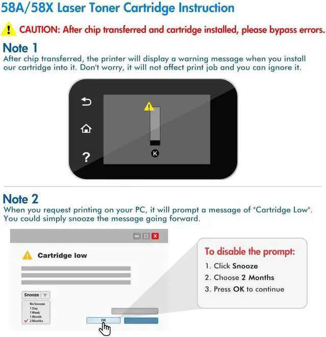 Include: 2 packs CF258A 58A toner cartridge (no chip) compatible for HP CF258A 58A 58X CF258X toner cartridge