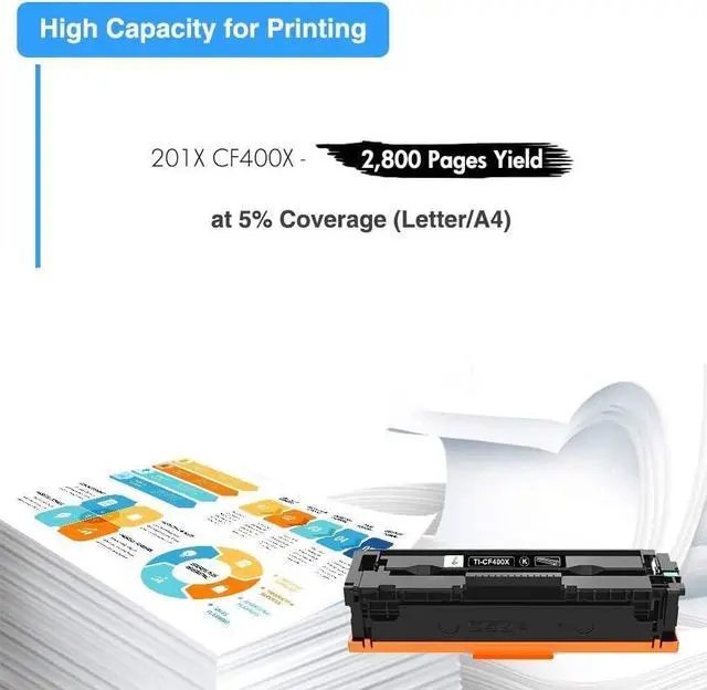 Page Yield: 2,800 pages at 5% coverage (Letter/A4) compatible for HP 201X black toner cartridge high yield