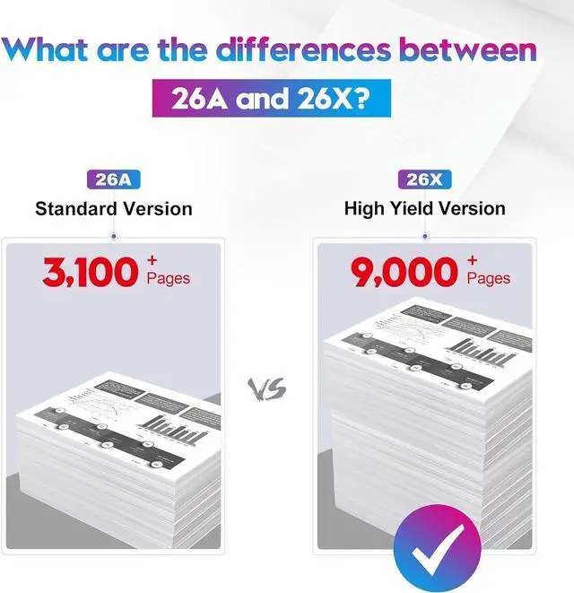 Package Contents: 2 Pack High Yield 26X 26A 226A Black Toner Cartridges