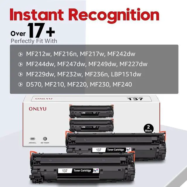 ONLYU Compatible Toner Cartridge Replacement for Canon 137 CRG137 MF212w MF216n MF217w MF244dw MF247dw MF249dw MF227dw MF229dw MF232w MF236n LBP151dw D570 Laser Printers (Black, 2-Pack)
