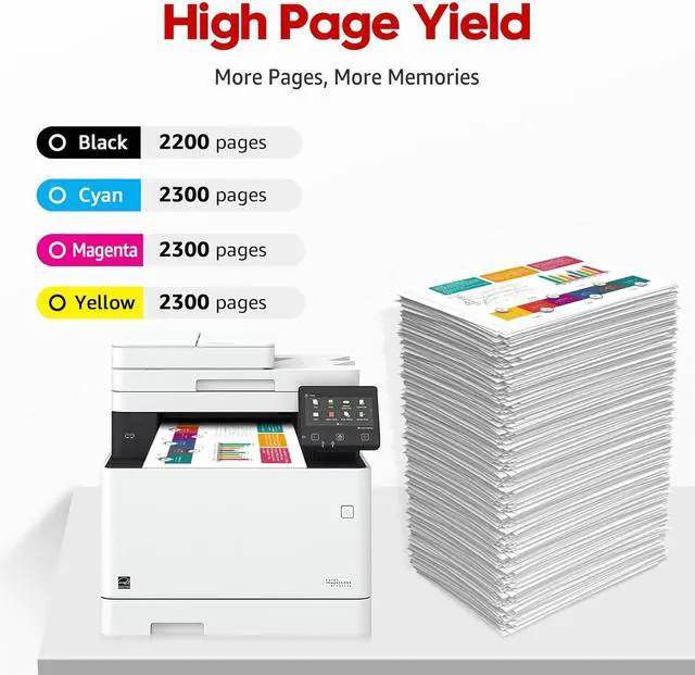 High Page Yield: 046 046H toner cartridges Black up to 2200 pages, color up to 2300 pages based on 5 percentage coverage of A4 paper
