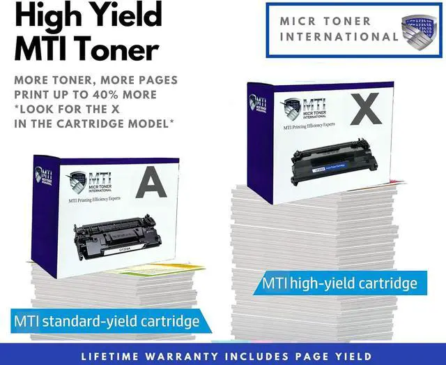 If you order more than one cartridge, test them all upon receipt. Despite the extreme care we take in packaging, sometimes items are damaged during shipping and this can affect print quality. In this case, we immediately send an MTI compatible HP 94X MICR toner cartridge.