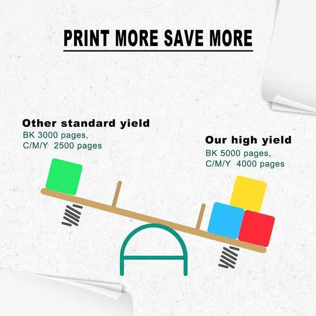 The Highest Page Yield : 5000 pages for Black, 4000 Pages for Cyan, Magenta and Yellow